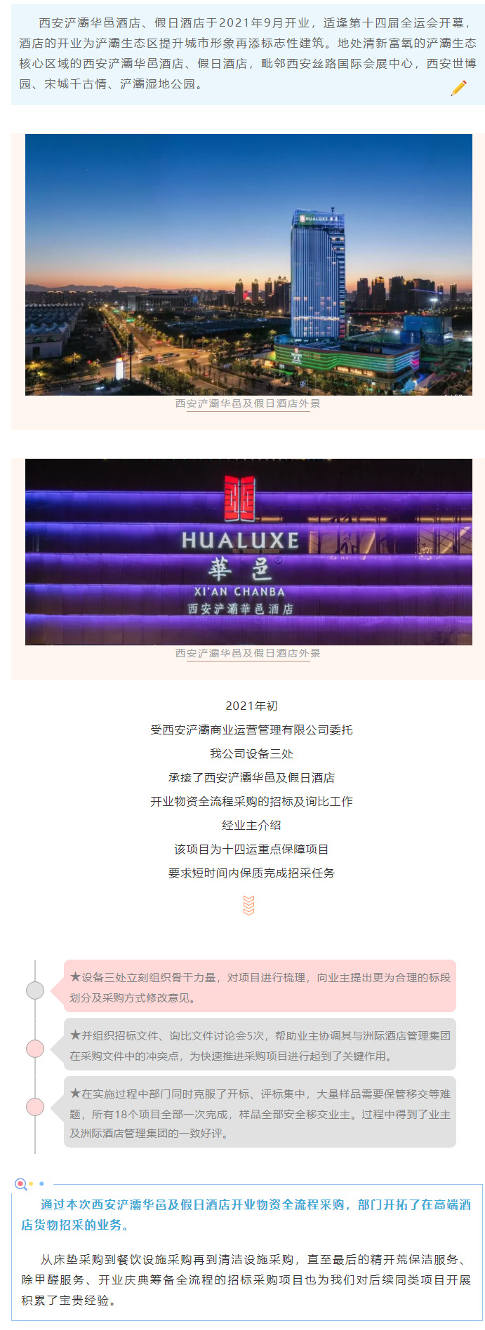 業(yè)務(wù)再拓展!西安浐灞華邑及假日酒店開業(yè)物資全流程采購
