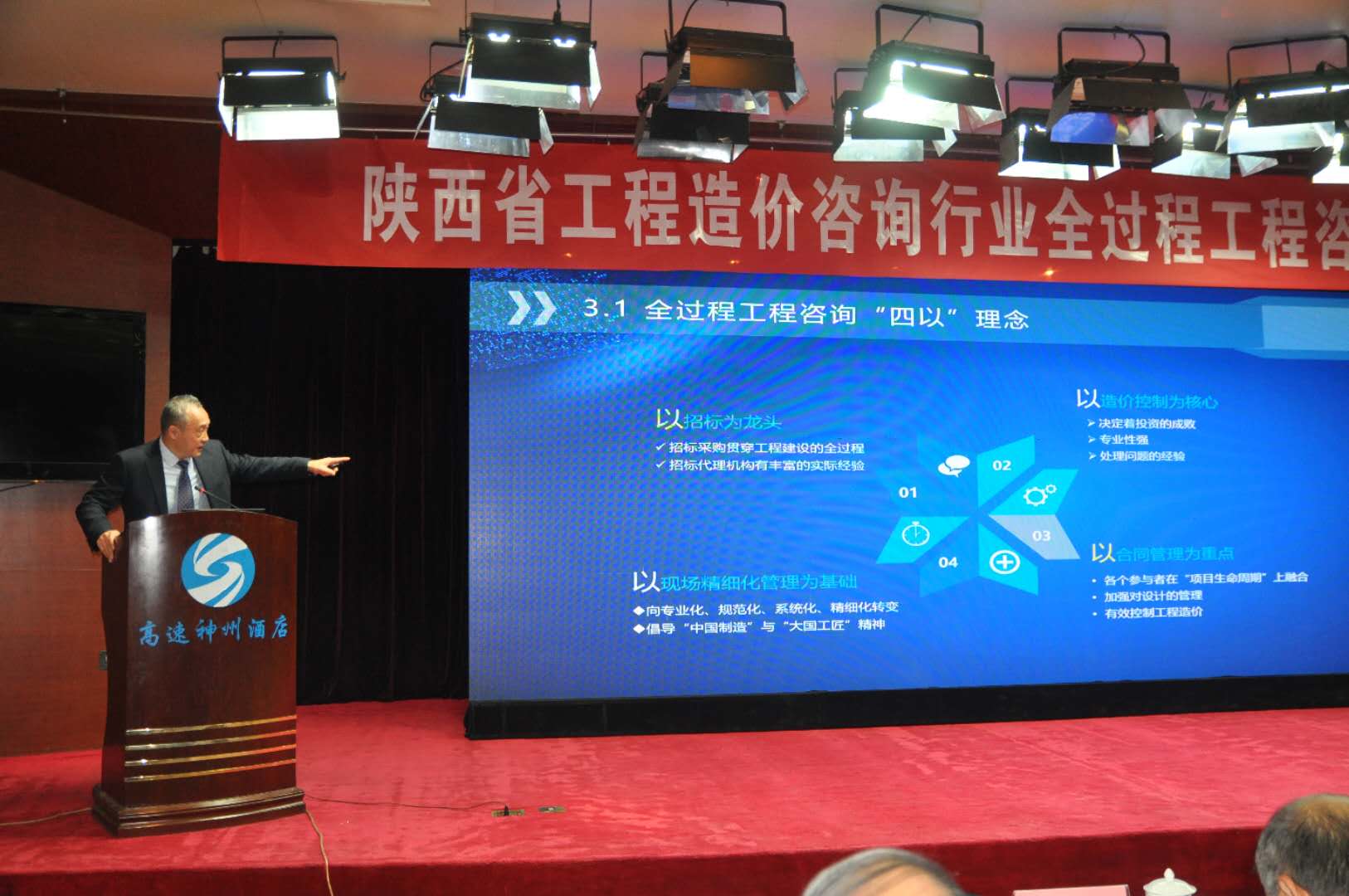 他站在歷史賦予一個企業(yè)家使命的高度上,講述了西北國際公司在全過程工程咨詢領域積極探索,結合公司開展全過程工程咨詢發(fā)展的三個階段,由淺入深,總結出“四個融合(組織機構的融合、服務內容的融合、業(yè)務流程的融合、工作成果的融合)”的思路,率先在行業(yè)內提出“以招標采購為龍頭,以造價控制為核心,以合同管理為重點,以現(xiàn)場精細化管理為基礎”,融合監(jiān)理、設計、咨詢等力量,走融合式全過程工程咨詢管理的道路,對行業(yè)的推動和發(fā)展做了一定積極的貢獻和促進的作用。