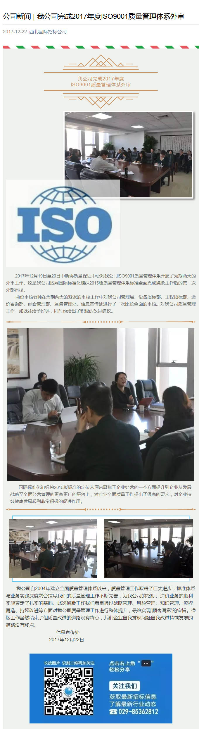 我公司完成2017年度ISO9001質量管理體系外審