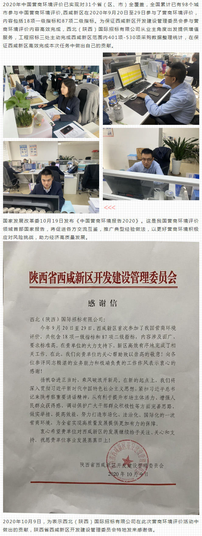 陜西省西咸新區開發建設管理委員會向我公司發來感謝信