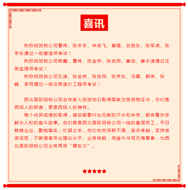 實力上榜——恭喜西北國際招標公司17人獲得國家注冊執業資格