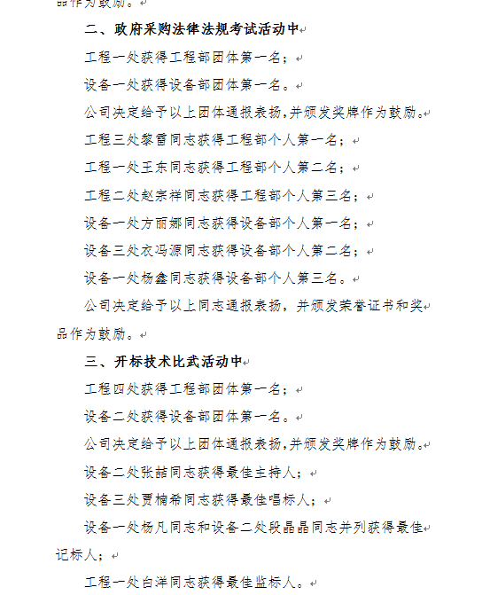 最后由公司領導對質量月活動中表現突出的優秀團體及個人頒獎。