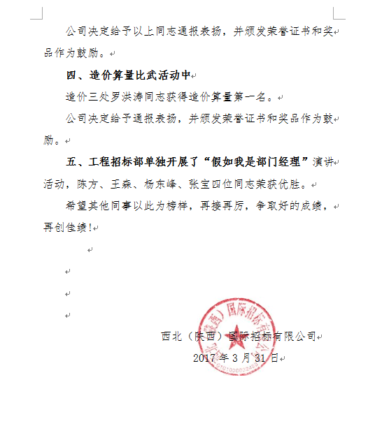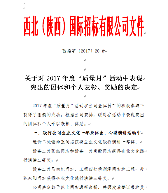 2017年度質量月活動,公司集中開展了:“ISO9001新版宣貫”、“政府采購相關政策和法規的宣講”、“審計工作的培訓”、“新員工入職系列培訓”、“造價制度宣貫”;“政府采購政策考試”、“案例分析”、“造價算量比武”、 “模擬開標技術比武”; “假如我是部門經理”、“踐行公司企業文化一年來體會、心得演講”等一系列活動。