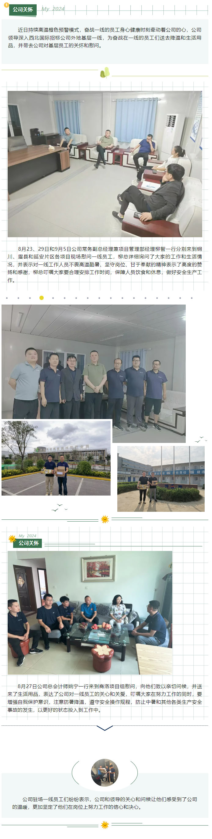 公司領導慰問各項目部一線駐場人員
