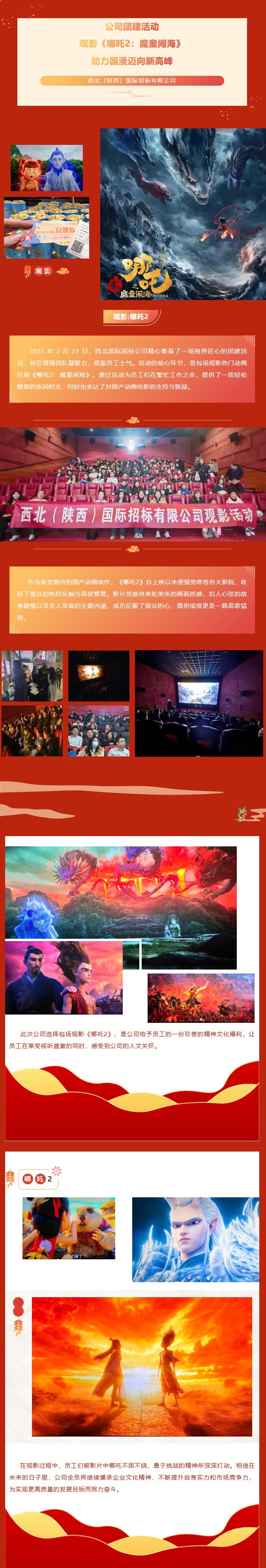 西北(陜西)國際招標有限公司團建活動觀影《哪吒 2:魔童鬧海》,助力國漫邁向新高峰
