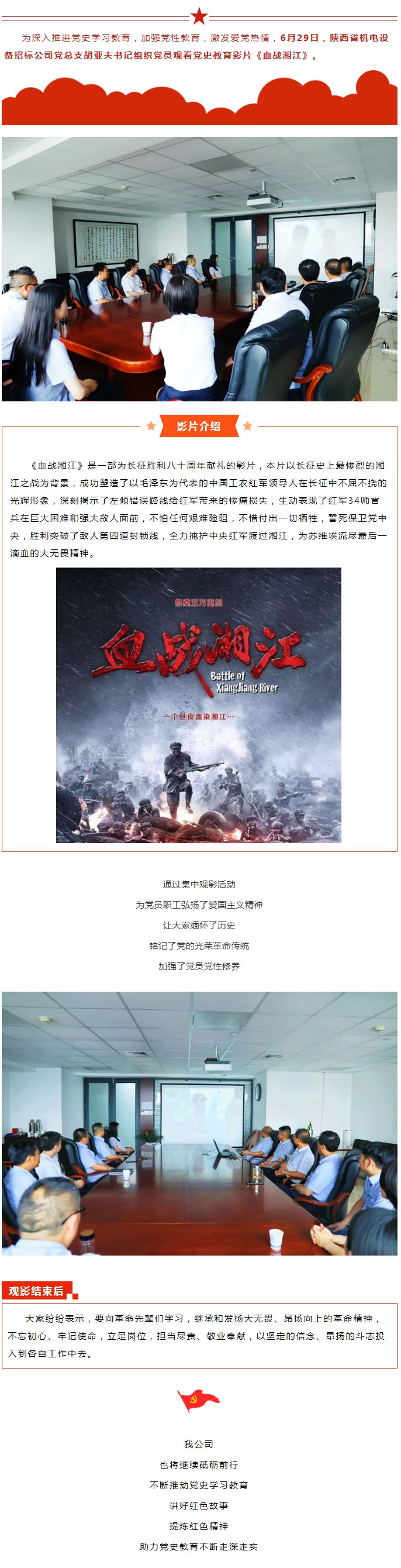 陜西省機電設備招標公司黨總支組織觀看黨史教育影片《血戰湘江》