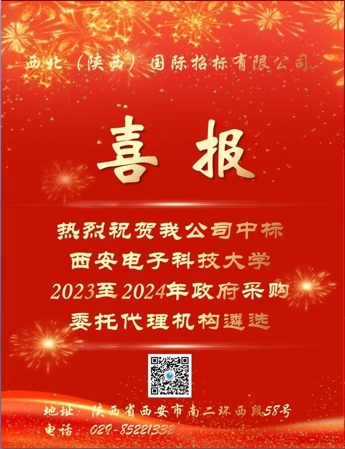熱烈祝賀我公司中標西安電子科技大學2023至2024年政府采購委托代理機構遴選