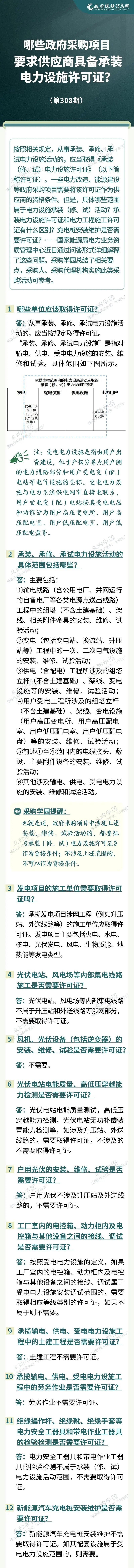 【圖說政采】哪些政府采購項目要求供應商具備承裝電力設施許可證?