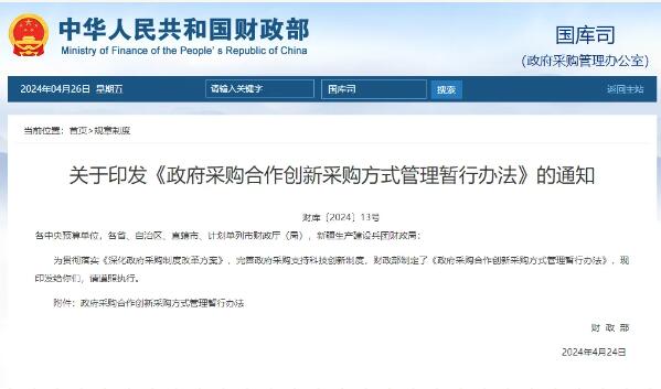 財政部發(fā)布最新一種政府采購方式